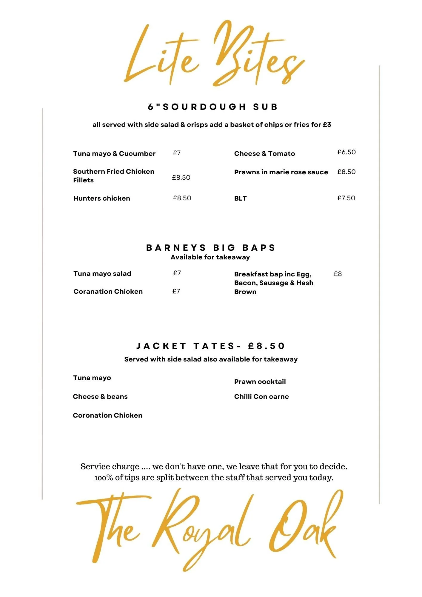 Our lite bites menu is available from 12pm until 2pm Tuesday - Saturday every week